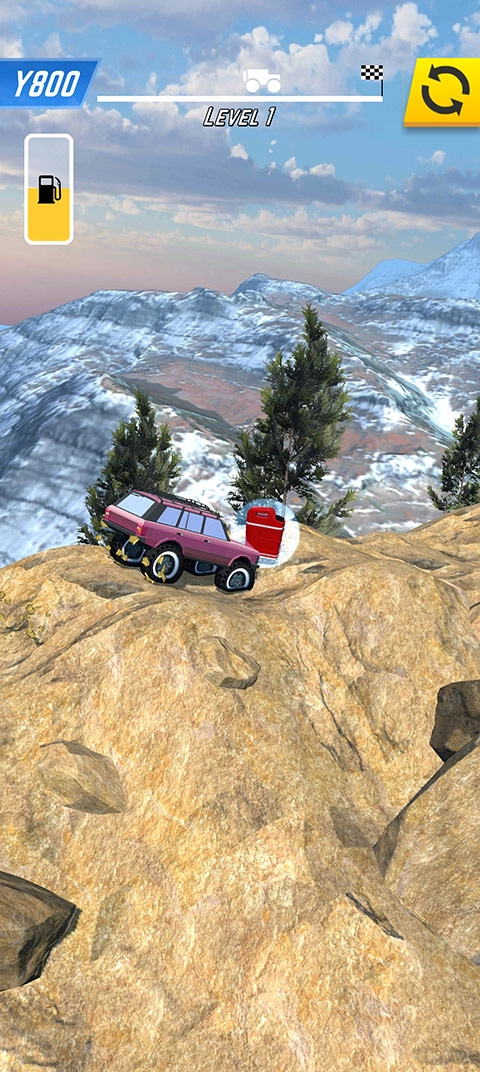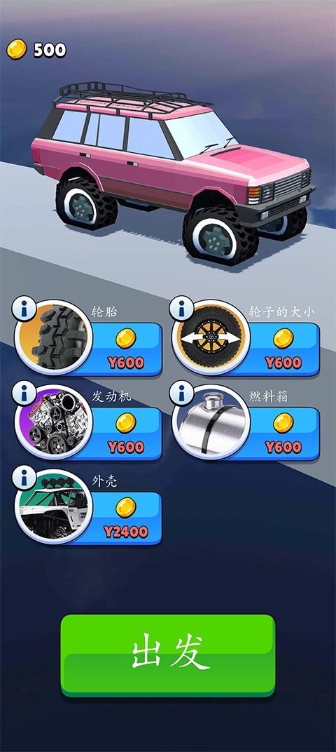 3、点击“出发”即可进入游戏,进入游戏后点击屏幕,车子就会向前行驶。当路过坡度较大的路段时,务必控制好速度,以免发生翻车情况。