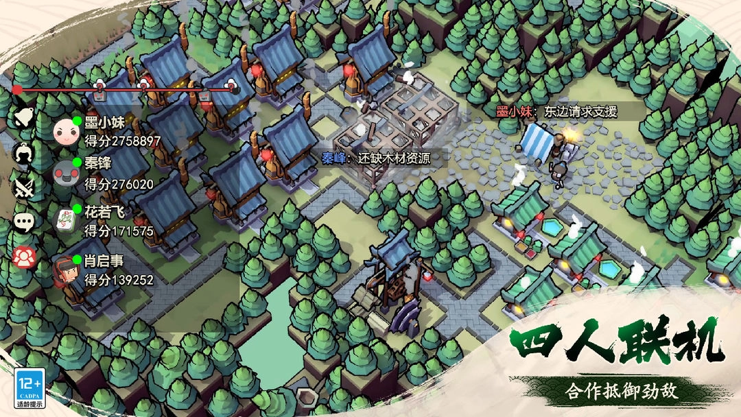 《墨守孤城》手游最新版本,是一款融合策略塔防与模拟经营元素的国风手游。游戏背景设定于一个遭黑化墨水侵蚀的古代世界。玩家将扮演城镇领袖,置身于这个由水墨构建的奇幻天地,通过修筑防御工事、招募士兵以及合理管理资源,来抵挡夜间黑化墨水方块人的攻击,守护文明。
