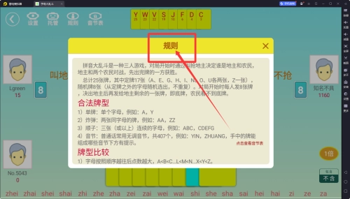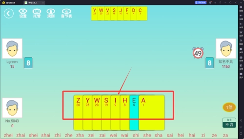 1、总计37张牌,包括方块26张对应26个英文字母和梅花11张从26个字母中随机选出且不重复,增加了游戏的策略性。