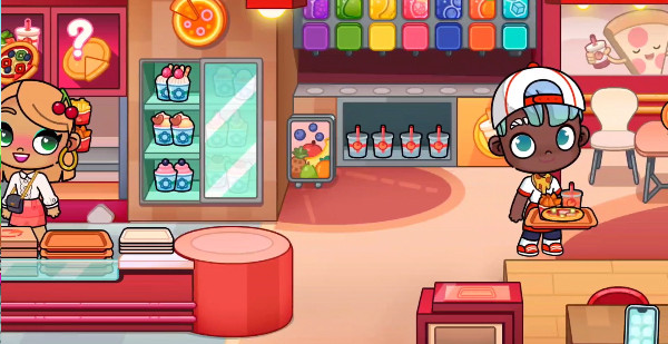 轻点上方招牌,披萨就会现身,一同出现的还有可爱的人物。