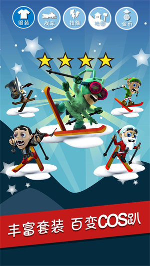 在游戏里,你不仅能够挑战刺激的夺命竞速,还能通过滑动屏幕做出各种特技动作!而且,依据所选择的单、双板以及坐骑的差异,特技动作也会有所变化!无论是向前、向后,还是向上、向下,赶紧来尝试一番吧!