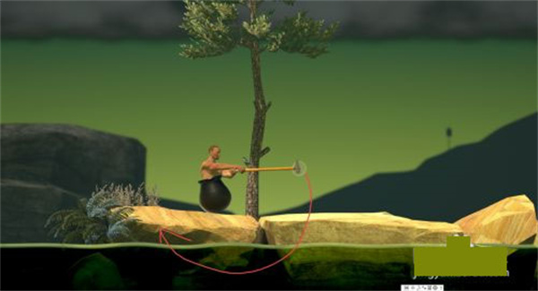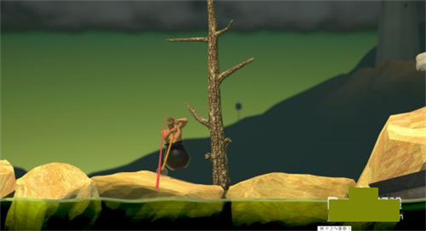 第一个障碍是一棵树,可以用锤子钩住树枝往上跳或者把锤子猛的往下按压;