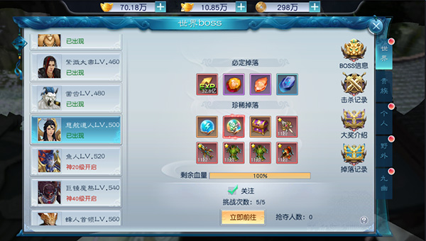BOSS超高爆率,神装坐骑翅膀随意爆,更可自由交易自由兑换,元宝赚不停。