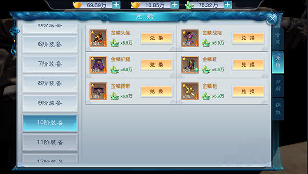 三个相同部位的红色1星装备消耗一定数量的二级淬炼星石可合成为2星红色装备;