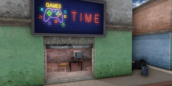 1、进入网吧工作模拟器游戏,根据路标指示控制主角出门。