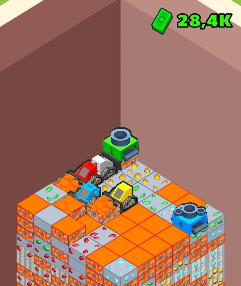 1. 玩家仅需操控两台矿机中的一台,把该机器放置在已挖出的矿石之上,便能自动完成回收,并将其自动售卖兑换成钞票。