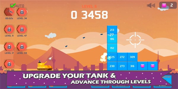 1. 玩家要操控不同的坦克,在各异的场景里展开闯关射击,前方的方块,每次射击都能获取奖励。
