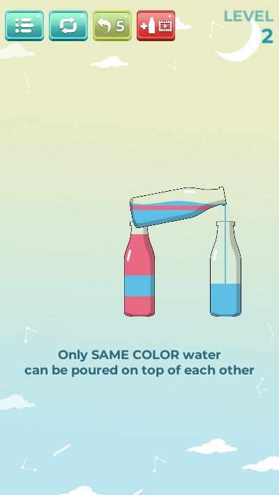 3. 玩家在游戏中的规则,是要将相同颜色的水装入有足够空间的容器中。