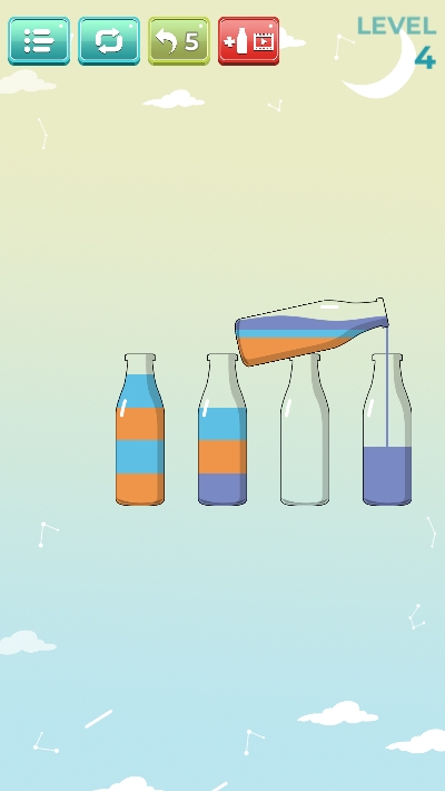 彩色水拼图这款游戏操作简单,玩家只需把相同颜色的彩水倒入对应的玻璃瓶。要留意彩水的分量,如此便能轻松通关。游戏中还有各式各样的关卡任务,任你自由尝试。