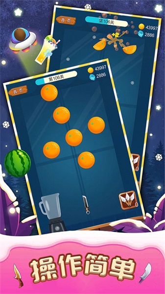 游戏中存在诸多精彩的玩法,每一个关卡都呈现出别具一格的游戏方式。关卡数量极为丰富,玩家能够自由选择挑战。大家还能通过完成任务解锁心仪的刀具,从而更迅速地切开新鲜水果。每天都要将美味的水果榨成果汁,售卖给顾客。各种各样不同的美味水果,足以满足顾客的味蕾。