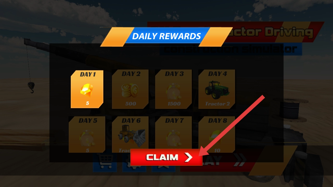 进入游戏后,如果弹出【DAILYREWARDS】界面,记得点击【CLAIM】按钮来领取每日奖励。