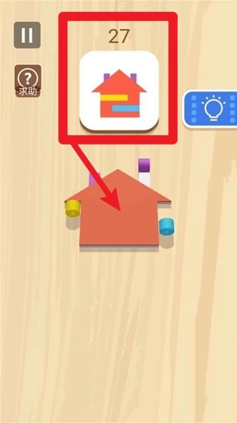 1.图案目标位置:画面上方显示的图形就是当前关卡的目标,玩家需依照此图案来展开底部彩纸对位完成拼图。