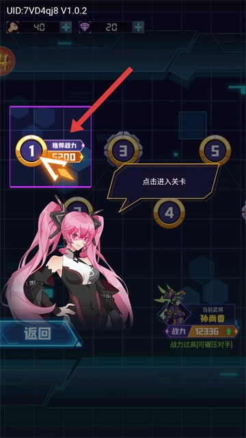2、玩家在关卡选择界面里,点击【1】进入第一关开始游玩。