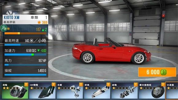 完成教程后会进入主界面,这时你得选一辆初始汽车,开启自己的竞速生涯。