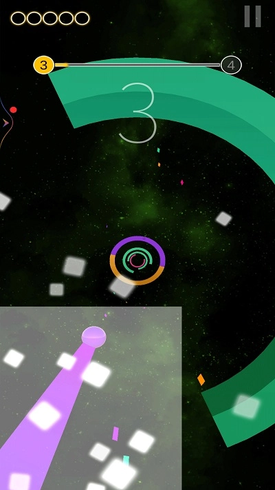 3、玩家要操控光球在轨道上快速移动,通过撞击和自身颜色一致的色块来获取高分;