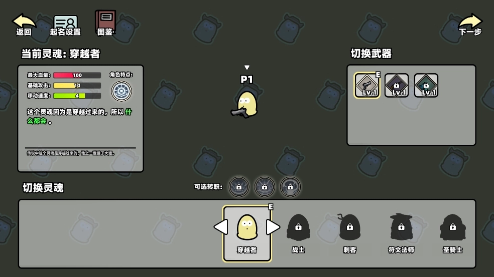 3、接下来我们要挑选自己的角色职业。玩家能够选择不一样的职业,还可以切换武器。