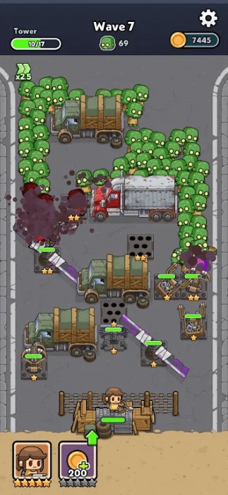 《尸潮堡垒》是一款主打极限生存的塔防策略游戏——在这个僵尸围困城市的末世里,你将以堡垒守护者的身份,用金币建造弩箭塔、刑翼塔等防御设施;通过升级塔楼强化火力输出,直面源源不断的尸潮冲击。每一轮僵尸浪潮的布局都变幻莫测,敌人也会随波次推进变得愈发凶猛。唯有仔细规划塔楼的摆放位置,构建出毫无死角的火力网,才能扛过一波又一波的进攻,赢取丰厚奖励并将其投入到防御体系的升级中。在这场生死攸关的生存博弈里,守住属于你的最后一道防线,谱写一段抵御尸潮的热血传奇。