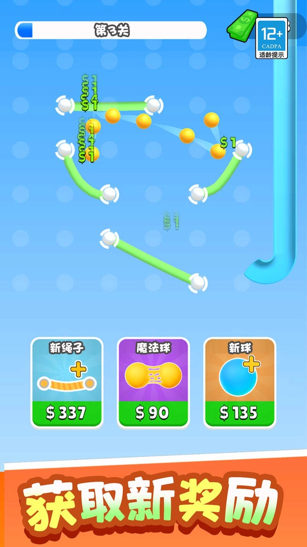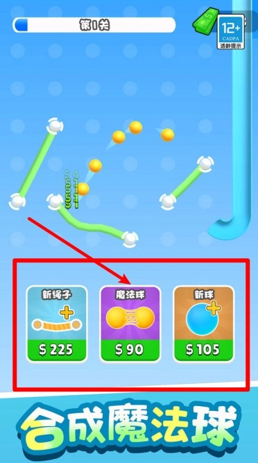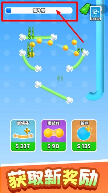 3. 新道具购买:页面下方设有新锯子、魔法球与新球这三类道具,玩家可自由选择购买并组合运用,助力更轻松地攻克高难度关卡。