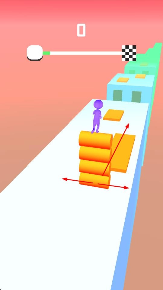 2、过程中会碰到各种颜色与形状的障碍物,像橙色的圆柱堆、红色的尖刺之类,需要运用跳跃和移动的技巧来躲避它们。