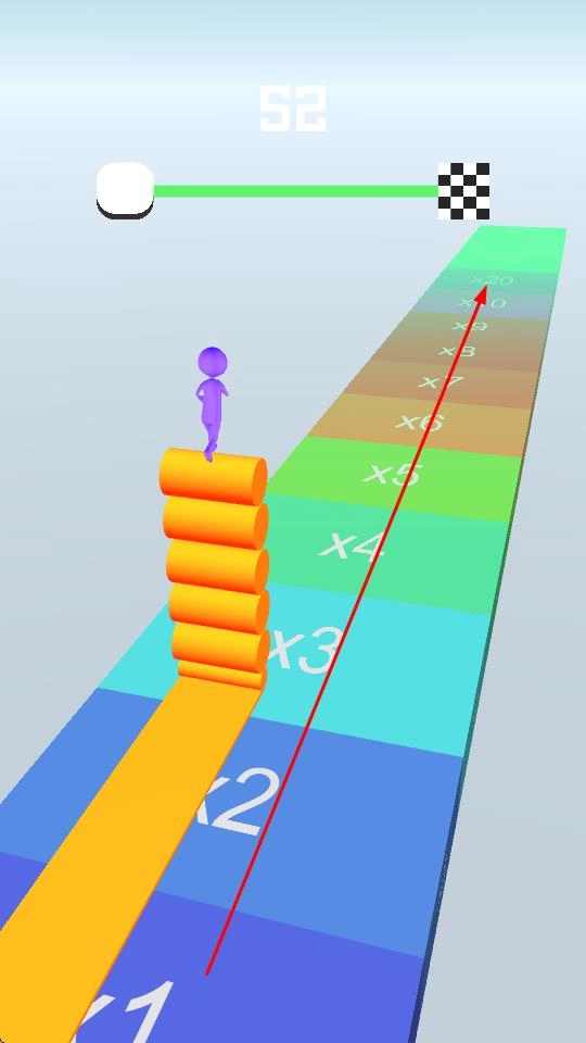 3、赛道将愈发复杂,会出现带有倍数标识的彩色区域,通过这些区域就能获取对应的倍数奖励,进而继续操控小人奔跑。