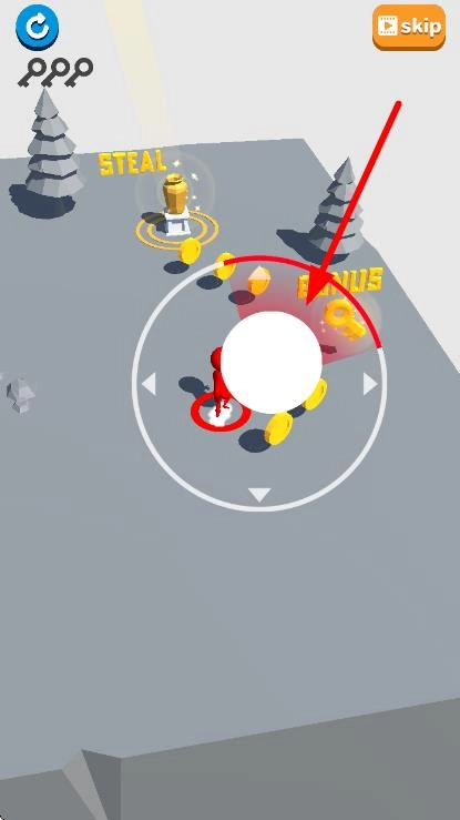 2、控制红色角色在场景中移动,可收集金币与奖励,但需留意避开途中的障碍,确保角色的安全。