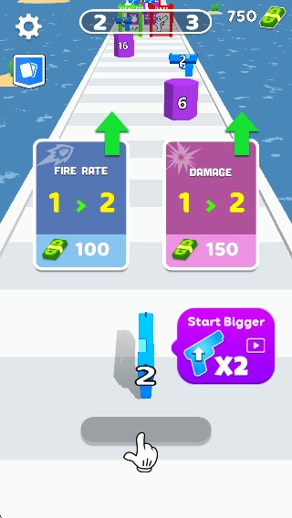 3、通过合并武器来获取强大火力,利用道具快速击败敌人,顺利冲过终点完成闯关任务,体验胜利的喜悦。