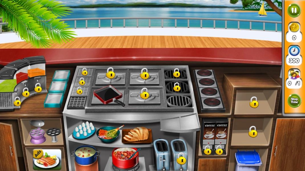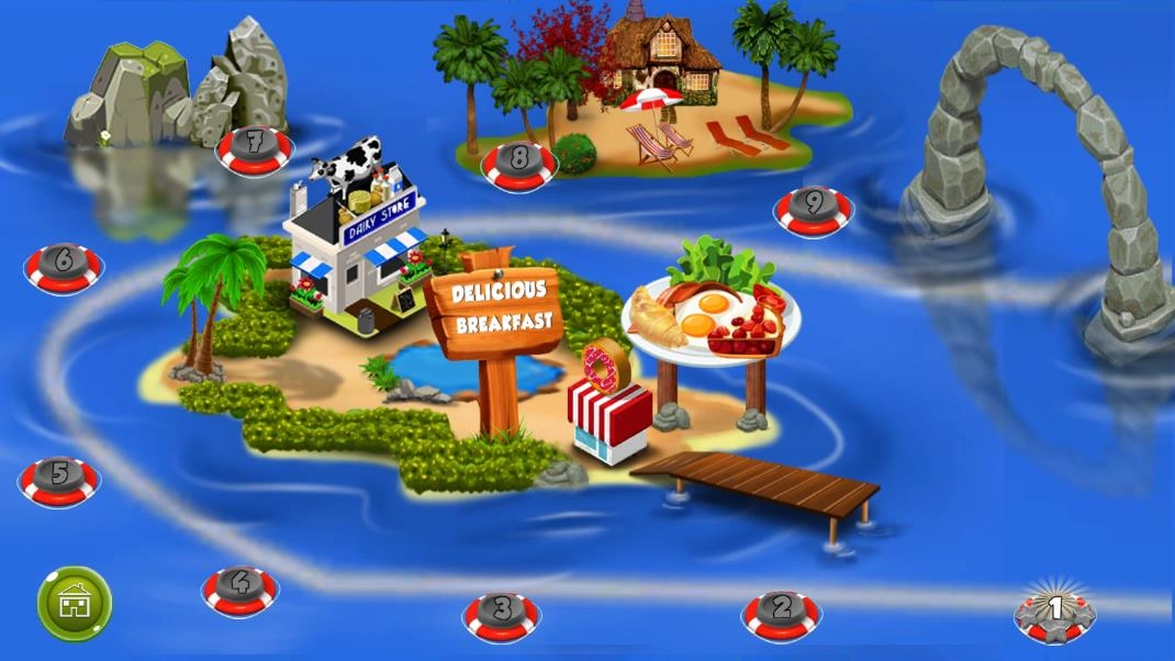 1、精致细腻的画面呈现:游戏采用欧美卡通画风,画面制作精致且细节丰富,海岛小镇的各类场景、琳琅满目的食材以及多样的烹饪工具都刻画得鲜活逼真,色彩运用明亮鲜活,为玩家打造出惬意欢快的视觉感受。