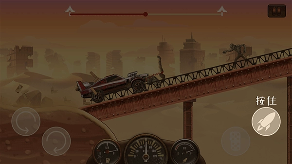 在这款游戏里,玩家得开车撞开眼前的障碍物和僵尸之类的东西,这些都是躲不掉的,而且撞击时汽车会受损。那怎么减少损伤呢?关键在于别直接撞,我们可以让车头抬起来,这样碾压僵尸就能轻松解决它们,既能降低伤害,又能避免直接撞击导致的速度变慢。