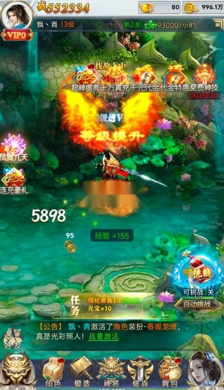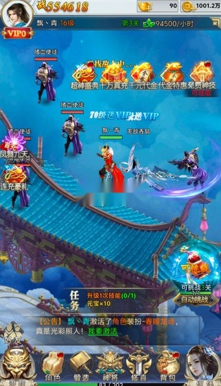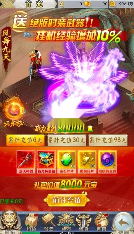 充值比例1:10元宝★完成任务 每日领千元代金券★开局送绝版时装和强力神武!★升级闯关累计领十万真充卡
