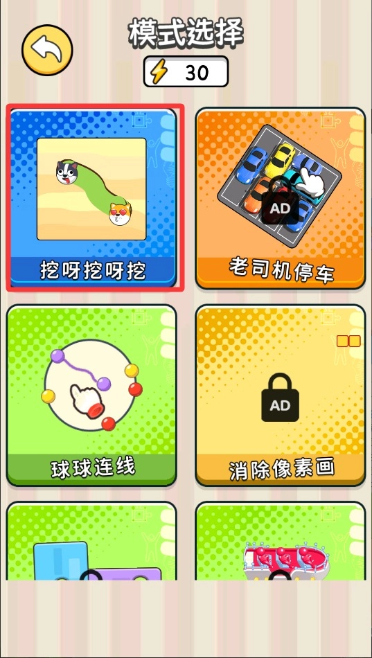 1、打开游戏先选闯关模式,有计时和自由两种玩法,新手建议从简单难度开始练习挖洞技巧。