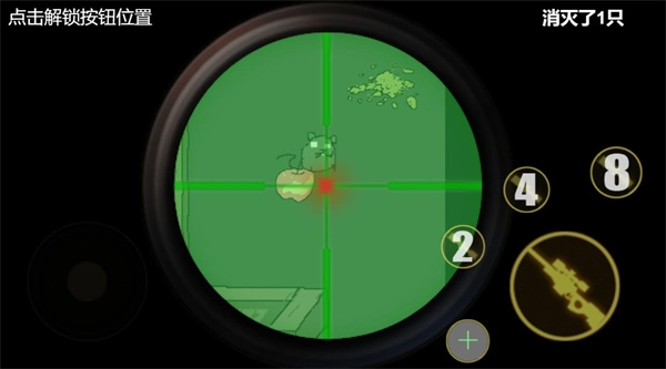 3、点击右边的2,4,8可以放大倍镜,更加方便瞄准老鼠。