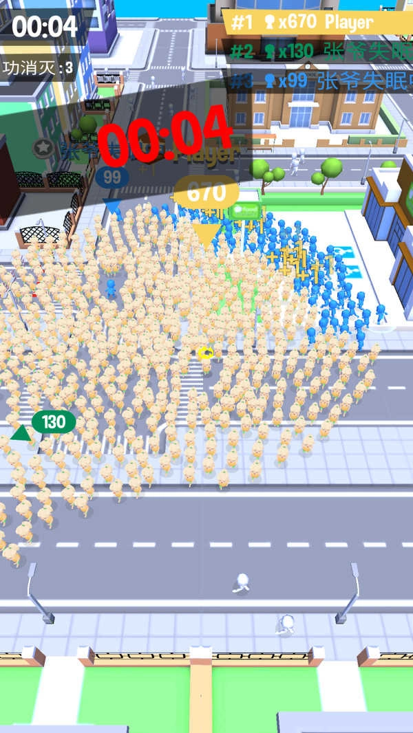 扩充自身的团队规模,与各地的玩家进行对抗,玩家要在尽可能短的时间内集结人群,通过攻击和吞并其他玩家,赢得最终的胜利。