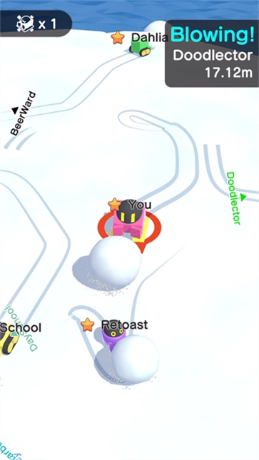 9、大雪球可以吞并小雪球增加体积(无论是正在搓的还是场上的)(最后你杀了6.7个之后可以留着最后一个,用你的雪球吃他的雪球折磨他,然后他也打不动你)