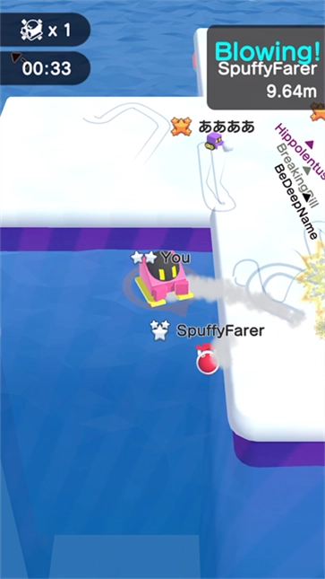 4、从前后左右都可以击飞,只有前方击飞要求雪球必须远大于对方,击飞时可以控制方向,可以控制方向落在雪块上