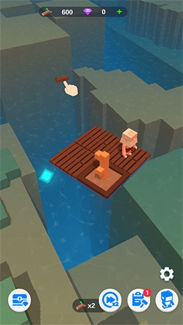1、在本站安装后打开游戏,点击发光的立方体即可建造新的船板区域。