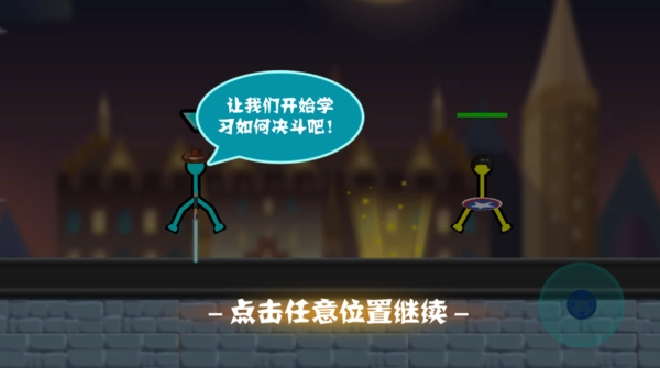 玩家在游戏中操控一个火柴人,利用简单的横版摇杆操作操控火柴人进行热血格斗。