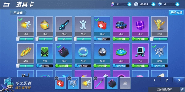 泷(水之忍者):能量剑,医疗箱,飞爪,酒桶,疾跑(锁前三个)