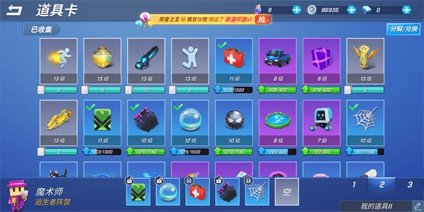 魔术师:飞爪,医疗箱,生命护盾,酒桶,自走球 (锁前两个)