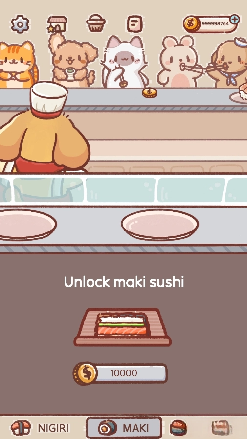 《狗狗回转寿司》是一款趣味十足的回转寿司店模拟经营游戏,玩家将化身寿司店老板,打理一家别具一格的回转寿司店——这里的特别之处在于,所有顾客都是软萌可爱的小狗狗!游戏里,玩家要持续制作美味寿司并摆上传送带,供小狗们自行取用。每只小狗都有独特的口味喜好和饥饿程度,玩家需依据不同小狗的点单,提供契合它们口味的寿司,以此获取金币。