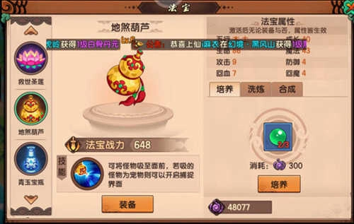 总体来说主要培养古剑 莲花 瓶子这三个法宝,很有用处的。