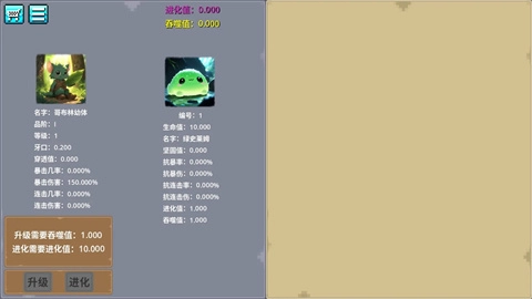 3、每次进行进化都存在变异的概率,有可能获得极为强大的神技,可也有直接退化的可能性。