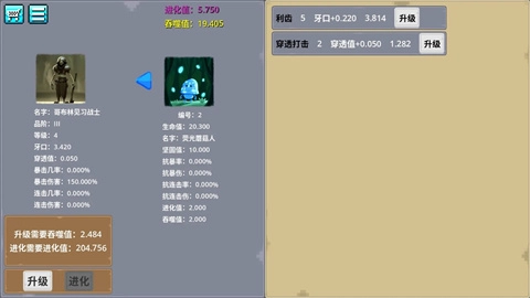 1、初始的哥布林其属性是随机生成的,有些哥布林天生攻击力高,然而成长速度却较为缓慢。
