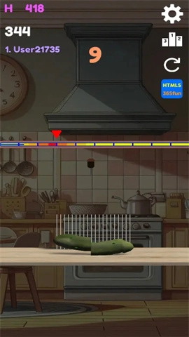 2、玩法简便,易于上手,玩家只需依照节奏提示进行切菜操作。