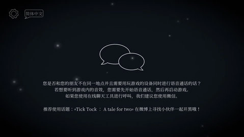3、一人选择玩家1,另一人选择玩家2,双方借助微信或QQ语音沟通协作,共同进行游戏。