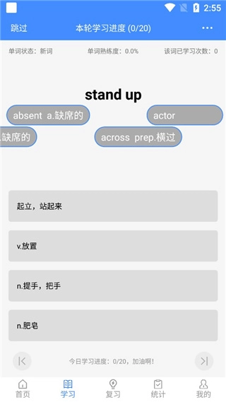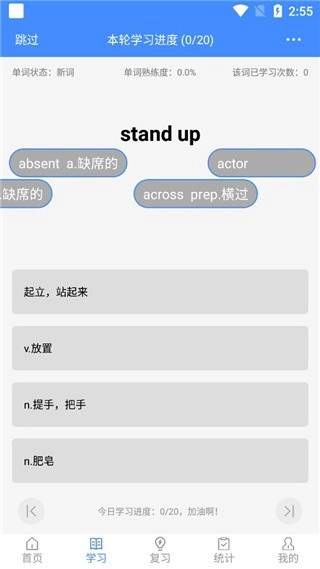 7、点击学习可以直接进入背单词,随后悬浮记单词app中的单词就全部显示出来了