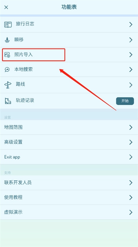 2、在功能表页面选择照片导入选项