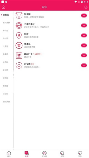 5、在“发现”一栏中,与前面介绍的首页、论坛及织女圈不同。在此处,线上网店能买到真正的手工编织作品。不仅如此,你还能自行开店,或者在线学习,参与编织相关的问答,又或是关注自己感兴趣的圈子,以便第一时间掌握动态!