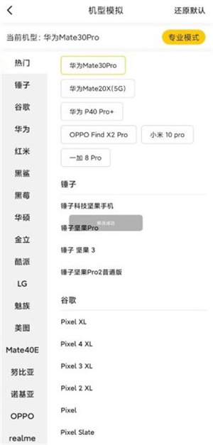 6、还具备分身伪装以及机型模拟功能。进入机型模拟后,用户能够对手机的厂商和型号进行设置。