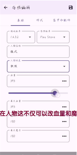 10、进入基础界面,我们可进行游戏版本、人物名称、难度、血量、魔力等数据的修改,