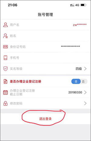 9、登出在账号管理 点击“退出登录”按钮,立即登出到登录页面